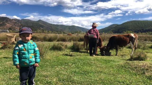 院子很大,还有滑滑梯,非常适合带孩子来玩。窗外就能看到湖,地址位置非常好,出酒店一下去就是湖边,坐船感觉非常好,水可以清澈见底,他们家位置真的好的没话说了,没多远就是索道,做索道的时候还看到了野鸡,天气好的时候上去风景真的是绝佳 非常值得一去 让我佩服的是早餐米线比我在丽江早餐店吃的还好吃😋服了。。豆浆也是店里自己做的,早餐确实物有所值。