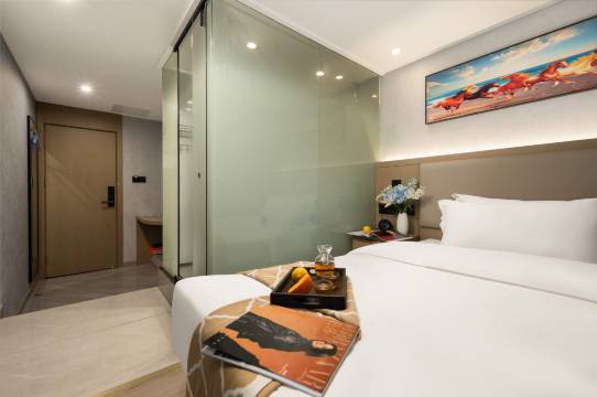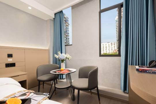很新的酒店,房间空间很大,采光好,明亮,设施齐全,前台服务非常好,特别是有免费的停车场,同济这附近停车太贵了,一天都100多,这个性价比太高了,出行也很方便,这附近好吃的特别多,非常推荐。