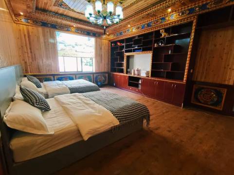 睡在房间床上就能看到雪山,体验感很好!老板还在每个楼层配有厨房,客厅,电视,沙发,麻将桌,对民宿来说这条件无敌了!门前可停车,小溪流湍急的流过,位置很便捷,出入方便!