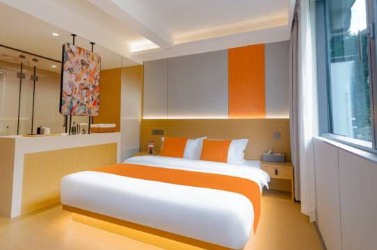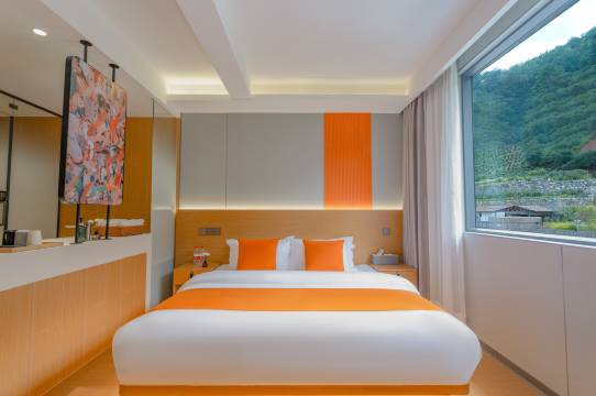 亲子房太友好了!两张床能直接合并(而且类似于榻榻米类型的,不怕娃摔地上)娃在上面打滚都够宽敞,睡起来超安心~前台小姐姐服务热情又麻利,房间干净整洁还安静,设施都是新的。门口有充电桩,对于电车非常有好!去爬黄山还可以免费接送,住这爬黄山省了不少赶路功夫,带娃出行选这儿真的省心又舒服!