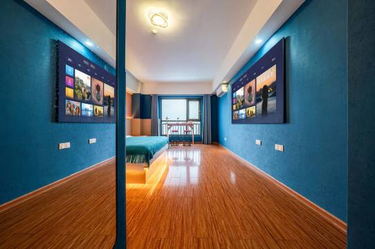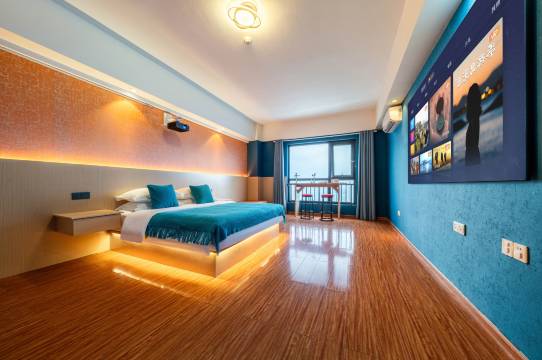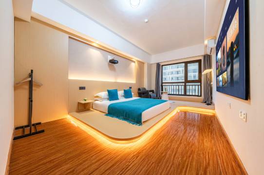 前台小哥贴心安排加微信引导停车位置和住房流程,比较有耐心,房间高层,有大投影仪,床睡的很舒服,就在万达,所以各方面都很便捷,房间供电人离开也是可以,这一点不错!