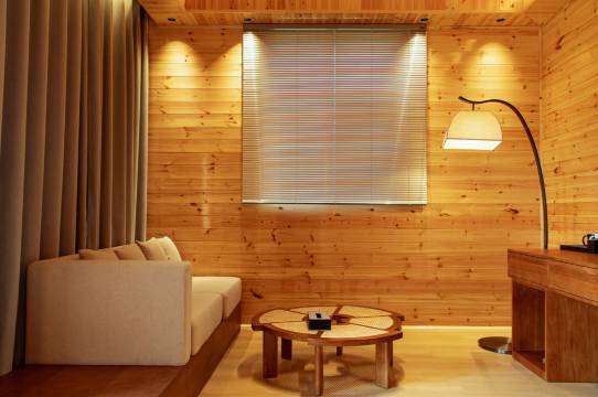 环境超好,有联排和独立小木屋,隔音我觉得还可以接受。