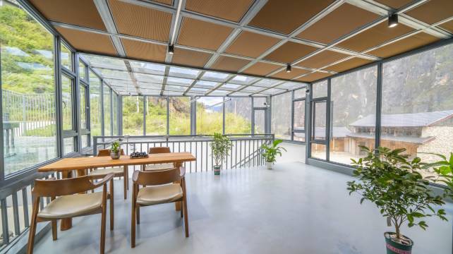 位置非常棒,可以欣赏峡谷美景,老板是湖南人,很勤快,做的饭菜也非常好吃,有停车场和充电桩,刚刚开上来有点怕,开熟练了觉得很爽,房间卫生不错。