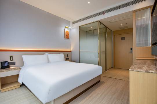 位置超赞,步行到地铁站只要3分钟。房间干净整洁,智能家居,床品柔软舒服,一夜好眠。前台小姐姐热情又耐心,下次来还选这家!