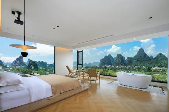 民宿位于印象刘三姐附近,门口就是遇龙河末段和漓江的交汇处,民宿交通方便,去阳朔各个知名景区和打卡点,都非常近,打车和叫外卖都非常方便。民宿配备有泳池、草坪庭院、网红卡座、儿童乐园、充电桩、停车场、餐厅、包厢等设施齐全。宽敞的房间,全景落地窗,连绵起伏的山峰美景,构成一幅美丽山水画,映入眼帘。浴缸、冰箱、独立洗衣机、巨幕投影是每个房间的标配,设施设备齐全。管家式服务,用心服务好每一位客人。