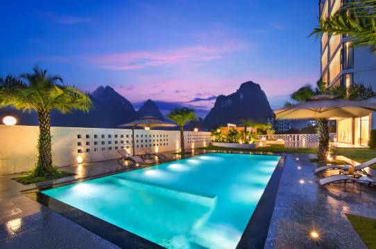 位置离景区很近,老板是五星级酒店的主管,专业,热心,房间干净卫生,拉开窗帘都能派出大片,小院专业设计,游泳池和风景融为一体!