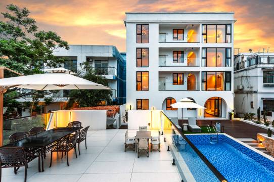 挺惊喜的,有码头接送,司机很健谈,到店后服务也很好,工作人员很热情,店里还有两只可爱的田园犬,有大大的泳池,很不错,晚上回来可以在泳池里玩一会,房间我和我闺蜜都挺满意的,干净整洁!下次推荐朋友来住!