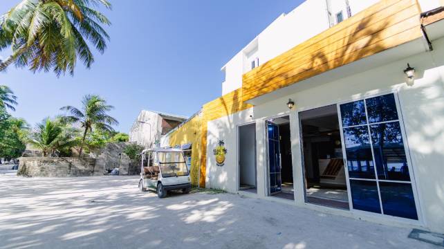 维拉瓦尼 - 马尔代夫海龟蜂巢位于堤夫施,靠近海滩,距离迪菲舒东风筝海滩和迪富士南滩不到 10 分钟步行路程。 该SPA家庭旅馆紧邻蜜月岛海滩及米鲁蜜月岛屋礁。
