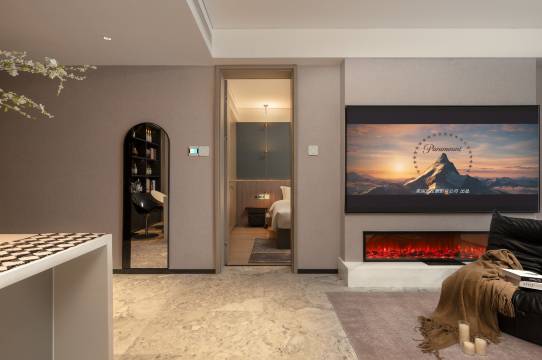 经常出差,住过国内很多的酒店和民宿,能在寸土寸金的成都金融城“遇上”如此有特色的一家套房酒店,着实有点惊喜。对于传统酒店设计已经审美疲劳的小伙伴来讲,首先,酒店给予每个房型的很文人气的名字就让人眼前一亮,“云华”,“玉露”都很契合茶和酒各自的主题。其次,房间内的灯光设计,软装布置处处可以看出设计师确是花了很多心思的。当然,最让人印象深刻的,还是酒店提供的管家式服务,入住时帅气的老板亲自下楼帮忙搬行李(其实本人不太需要,但不好拒绝别人满满的热情),耐心的帮忙调整投影仪,介绍酒店可以提供的各项服务(可以提供简单的鸡尾酒,功夫茶,还可以免费提供Switch,PS5游戏机,网红星空灯啥的,我心里暗自感慨现在开个酒店都这么卷了吗==#),虽然大多数东西对于出差的人来说用处不大,但相比很多价格高到天上,但服务却一塌糊涂的品牌酒店来讲,作为消费者,还是希望有这样的竞争者来卷卷这个市场的。
