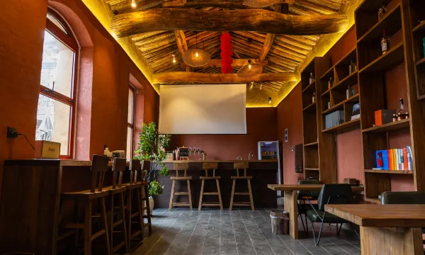 半山云舍占地面积200亩,为前英谈村修缮改造而来。 客人经过百年历史的前英谈石砌大门进入半山云舍村落,体会太行山区独特韵味的古寨氛围。 客房在保留了明清院落和石砌石屋的原始风貌的同时,内部按照星级酒店标准进行了修缮改造,每一件家具都经过了精心设计和定制加工。屋内配备了全屋智能家居、独立卫生间、品牌卫浴产品等。院内搭配有厨房、棋牌室。 半山云舍村庄内包含烧烤篝火平台、精酿酒吧、咖啡厅,夜间更有精心设计的村庄灯光景观,值得客人拍照留念。