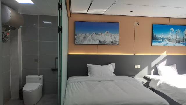 老板人不错,厨房大叔人也和善,离索道站近,停车方便而且免费,装修现代化,空调和电热毯双管齐下让冬天也住着舒服,床也比较软,每个房间有单独的热水器,用热水方便
