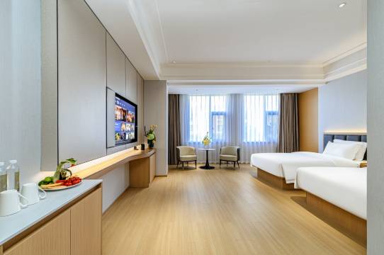 这家酒店位置挺不错,位于城中心地段,周围餐饮非常出名等。酒店非常干净,前台比较简单,三楼以上房间,其他都挺好。房间很干净,很满意,带小朋友去送了早餐卷,离生态湖很近。还给我们升级了带独立泡池的房里,说泡池都是一客一消毒。