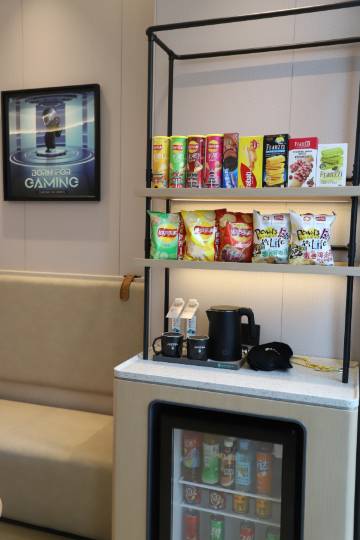 房间设计非常用心,灯光氛围感十足,电竞椅人体工学设计包裹感和支撑性都很好,坐几个小时打游戏也不会腰酸背痛。