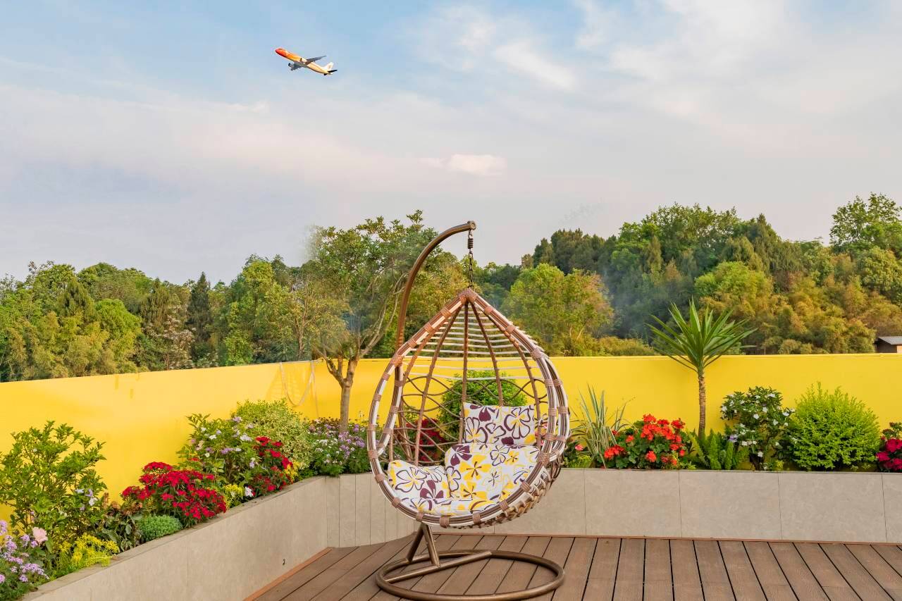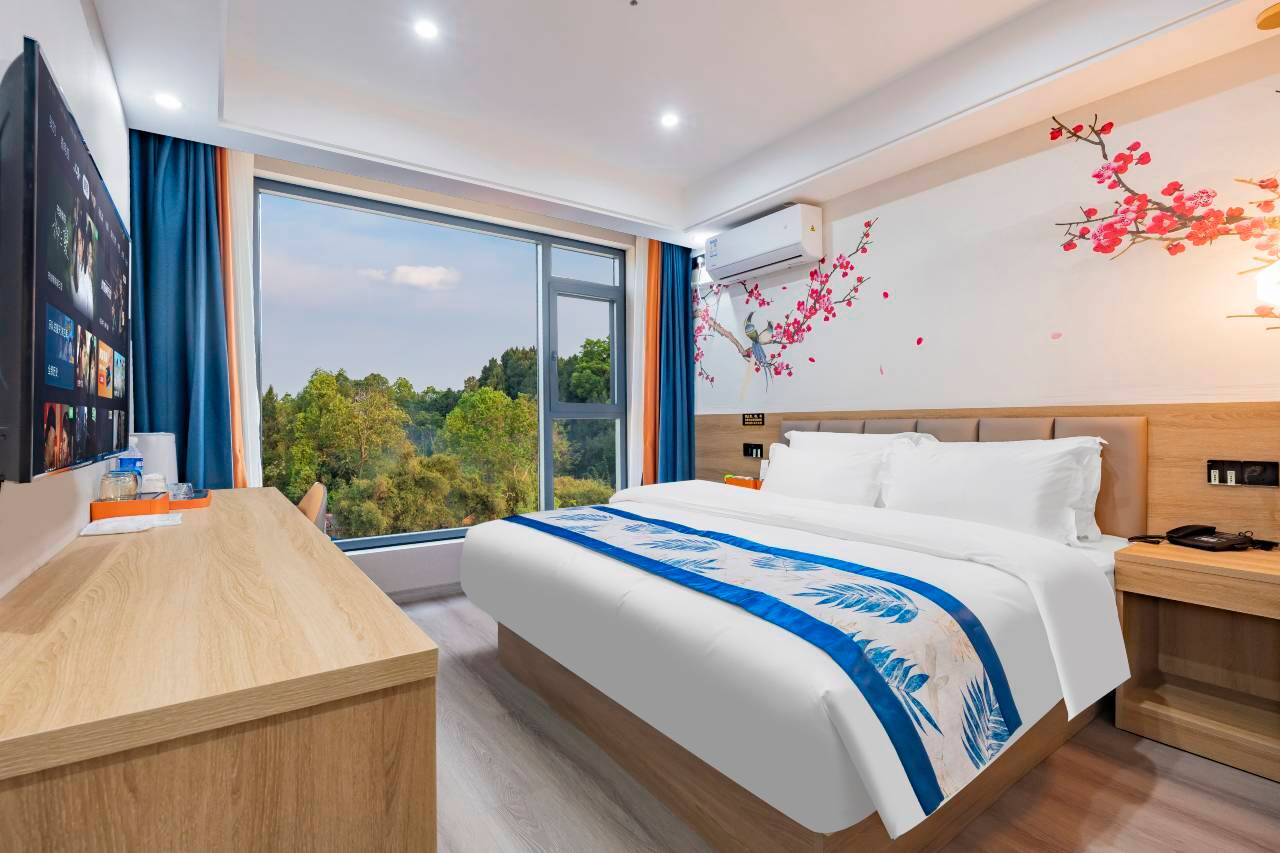 幸福港湾酒店(成都天府国际机场店)位于成都天府国际机场出口附近,地理位置甚佳,距离地铁口5分钟,距离航站楼8分钟。酒店采用立体花园式设计风格,全楼层花园布局,设有地标打卡点、屋顶花园休闲区、外花园休闲区、玻璃天井、小超市、露营地、洗衣房、餐厅、停车场、充电桩、机麻房、花园式休闲阳台、电梯、夜景灯光秀等。酒店提供免费接送服务,叫醒服务,雨伞、挂烫机、洗衣机免费使用,休闲食品等服务。房间由多种风格构成,房型丰富,且提供一次性面巾、一次性纸杯、一次性马桶套、一次性拖鞋、一次性洗漱用品(牙具、梳子、护理包、剃须刀、浴帽)等多种物品,为顾客的卫生和健康保驾护航,提供深睡床品深睡床垫,记忆枕和鹅绒枕,适应不同顾客需求。酒店旨在为您提供舒适、温馨、幸福的休憩空间。怀抱温暖,幸福人生,岁月鎏金,与君偕行。酒店欢迎您的光临。感君一顾恩,同来天府陌。情至笔载援,福源同天阔。