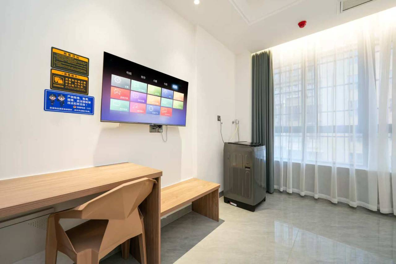 房间非常干净舒适,设施齐全,里面有冰箱洗衣机,各种用品一应俱全。旁边吃饭打车也很方便,旅游出差不错的选择!