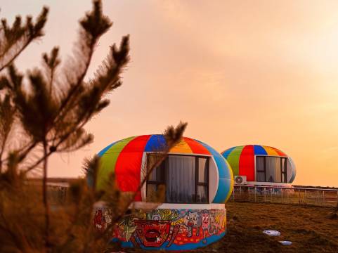 乌兰哈达火山旁,夜空小冰岛。民宿坐落于3号火山旁边山脚下(驾车3分钟) 详细位置:内蒙古乌兰察布市察哈尔右翼后旗乌兰哈达火山北游客中心(营地接待中心) 站在院内就可看到3号火山面貌,酒店可提咖啡饮品,午餐晚餐可提供蒙古火锅。 在零下十八度的冰天雪地里,躺在地暖房间里喝着热腾腾的蒙古奶茶,透过智能天幕仰望漫天星河。 窗外是皑皑白雪,远处是巍峨静默的火山,荧火星球民宿带给你的梦幻冬日体验! 与火山零距离。荧火星球民宿就坐落在乌兰哈达火山群旁,几乎每间房间都能直接看到对面的3号火山。 站在观景露台上,目之所及是一片广袤而纯粹的雪原,早晨推门就能拍出雪景大片。 设计感满满的民宿外观像极了宇宙中的“太空舱”,尤其是夜幕降临时,圆形舱在灯光映衬下宛如点缀火山雪原的荧光星点,随手一拍就是氛围大片。 星球上遇到的惊喜。恒温空调:即使屋外零下十八度,屋内穿薄衫也毫无压力;智能天幕:一键打开,直接在床上仰望漫天星河,仿佛置身孤独星球;露台平台:冬日里惬意的事就是裹着毛毯,坐在露台上看雪景。品尝蒙古地道美食,早餐:蒙古奶茶、羊肉烧麦,非常有特色;午餐晚餐:必吃的蒙古火锅,热气腾腾的羊肉简直是严寒中的救赎;咖啡厅:在这片冬日火山群落里能喝到现煮咖啡实在惊喜,推荐情侣、亲子入住!追求独特住宿体验的小伙伴,假期生活可以“不紧不慢”,发呆、看火山、喝咖啡,在这个孤独星球上享受独属于自己的慢节奏时光。