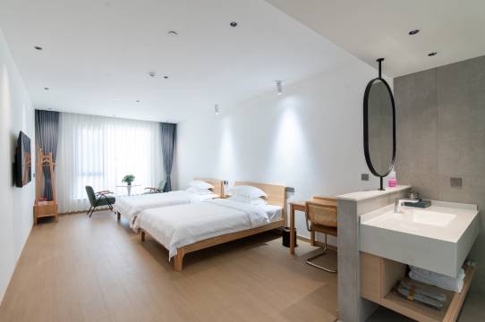 庭院雅致房间大,落地大窗晒太阳真的太舒服了。房间用的智能系统,简约干净,早餐定食非常精致。服务也很好,事先联系确定到达时间、人数,提供准确定位,还给我们升级了房型。而且5分钟走进枫泾古镇,去逛吃or采买都方便。