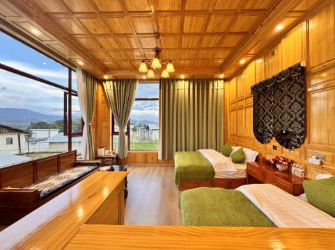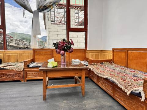 早餐很丰盛,服务很好,房间也很干净,客厅超豪华,很有藏式风格,去附近徒步路线也很方便,超推荐大家来