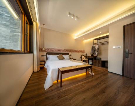 《楠舍》位于大同古城内,闹中取静,距代王府步行约15分钟。酒店配备全屋智能语音系统,全屋软水净水以及新风,配备大屏高清投影、美国舒达零压床垫、高端洗护用品,智能卫浴等。酒店将姹寂风和大同北魏历史文化相融合,色调浓淡相宜,别具一格,尽显东方设计之美。楠舍始终秉承宾客至上的服务理念,贵宾通道,私人管家的贴心与周到更是无微不至。 远方的朋友,如您从远方千里迢迢来到平城,可以沿着徐霞客的足迹游历北岳恒山拜会千年古寺“悬空”。亦可铅华洗尽探究佛教艺术遇见“云冈石窟”。再梦回辽金觐见古寺“华严”。而后踱步至九龙壁,燕王朱棣被九龙生辉所震撼,这颗辽金遗珠从明朝闪烁到今朝。
