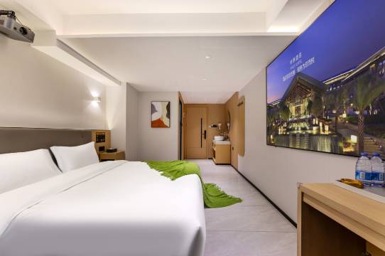 前台热情专业,快速办理完入住,房间干净整洁到让人惊喜,床品柔软舒适,一夜好眠;卫生间干湿分离设计合理,洗漱用品品质在线。地理位置也超便利。性价比拉满,下次来还选这里,投影也不错