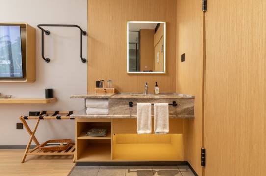 连锁酒店还是可以的,上次入住还是上学时候。酒店性价比太高了!同等价位下房间面积比别家大很多,智能家居设备超方便,语音就能控制灯光和空调。对商务出行人士太友好了,强烈推荐!