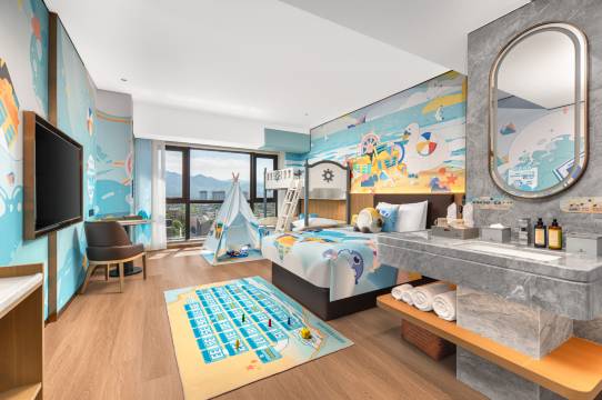 酒店位置便利,有儿童设施,房间布局很温馨有特色,床也舒服。前台小顾很漂亮服务更热情,特意升级了房型。下次再来住。