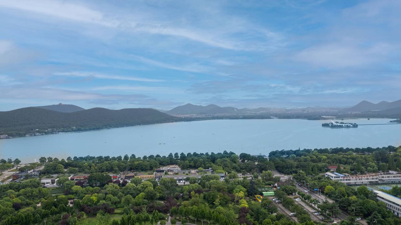 万人沙滩的湖对面就是云龙山观景台