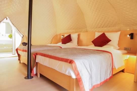 小建议:帐篷隔音稍弱,但酒店提供了耳塞,介意的话可以选远离公共区域的房型。