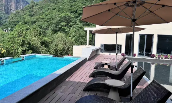 南面的房间物有所值,绝美的景色,狠狠感受了一下什么是住进风景里,早起跑步也是绝美,清晨,山谷十分静谧,空气质量超好。夜晚的星空是在城市里看不到的。很满意,孩子也很开心。瀑布以及水帘洞的钟乳石,鬼斧神工,很震撼。酒店餐厅的景色也是很好。同时也很感谢咖啡厅的小姐姐和前台小姐姐帮忙找到了手机。好评。