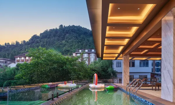 酒店位于张家界武陵源西游记取景地宝峰湖景区入口处,距离张家界国家森林公园标志门东门以武陵源及汽车站几分钟车程,酒店提供中西式早餐、无边际游泳池、会议室、健身房、咖啡吧、茶吧、洗衣房、烧烤区、 超市、停车场,衣服晾晒去等配套设施,将城里人的生活植入到大山深处,尽情享受山里的新鲜气息酒店地处于武陵源风景区交通枢纽腹地、荷花机场、高铁西站、汽车站均可乘坐公共交通到达,周边还配有银行、医院、特色小吃、酒吧、大型购物广场等配套、夜晚游玩演艺场所有民俗大戏魅力湘西、宋城千古情、烟雨张家界、梦幻张家界、湘西老腔、溪布老街等酒店拥有室外停车位达上百个,所有客房配备智能语音系统、智能马桶、minibar冰箱,品牌洗漱用品、贵妃躺椅,6楼配备洗衣房烫衣机,给您的出行提供便利条件酒店提供标志门接送服务,特色下午茶,池畔吧饮品,管家行程定制服务中心,酒店全体人员恭候您的光临。