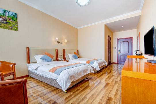 一共订了两间房,总体感觉还不错。七月份额尔古纳进入旅游旺季,房间价格不便宜。