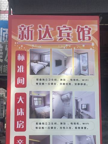 新达宾馆设施齐全。卫生干净,环境很好,服务热情,值得居住,良心宾馆!可以放心居住!值得收藏!