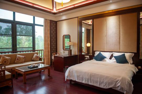 房间非常漂亮,都是红木家具,很显高档。员工服务很好,早餐丰富,景区非常紧,周边环境也非常好,性价比很高