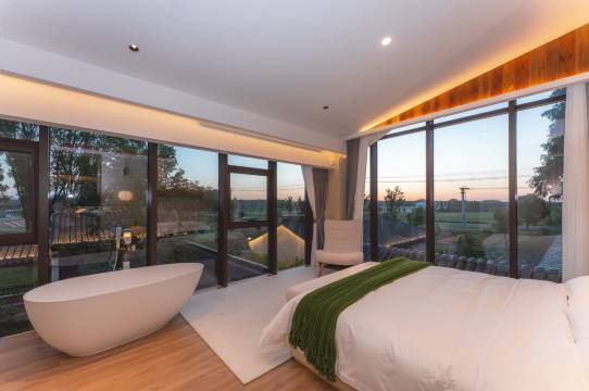 民宿临湖,风景视野绝佳,房间宽敞明亮,卫生到位,是个周末散心的好地方。