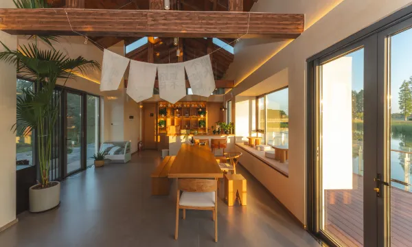 溧阳小飞鹅精品民宿位于江苏省溧阳市竹箦镇姜下村,是隐居乡里第三十四个乡村改造项目,也是旗下的以亲子主题民宿。小飞鹅内部有咖啡厅,餐厅、泳池,苏式园林风格的庭院,外部有露营基地,民宿整体坐落在姜下村的鹅湖湖畔,屋内通透明亮,居住舒适惬意,推窗看得见森林湖泊.….一年四季不同时节来到小飞鹅,都可以体验到丰富有趣的游玩活动:采摘特色蔬果、赏鹅湖美景、品鹅嘴咖啡、看最美鹅湖日落、体验农事活动(稻田插秧、摸鱼等)乐趣。姜下村以竹箦风鹅而闻名全国,所以被趣称为“鹅村”! 位置:江苏省常州市溧阳市竹箦镇姜下村 设施:鹅嘴咖啡厅、露营基地、泳池、无线wifi、停车场接待。餐食:民宿配备餐厅用餐 周边游玩: 鹅农场乐园、最美天路、神女湖、神女之心、瓦屋山休闲旅游区、新四军江南指挥部纪念馆