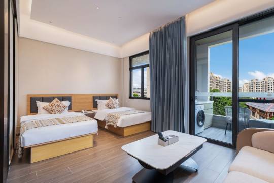 一进房间就被惊喜到,空间宽敞通透,独立阳台正对着椰林,清晨坐在阳台吹风,度假感直接拉满。最让我满意的是房间居然带独立厨房+冰箱+洗衣机,简直是长住旅客的福音!逛完免税店买的水果能塞冰箱,换下来的衣服随手洗,自己煮碗面都很有居家的踏实感。