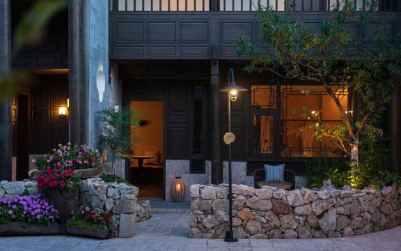 【地理位置】:酒店位于云南省丽江古城(又名大研古镇),坐落于丽江古城南门街宝屋巷16-29号 【设计理念】:历时数年由著名设计师(叶颢坚)3年打造,以“匠人匠心”文化为核心诉求,精雕细琢,占地面积 9000 平方米,建筑面积 7000 平方米,花园面积 3000 平方米,是丽江较大较高端的庭院式度假酒店之一。 柏乐朗品牌获得的设计奖项: iF DESIGN AWARD(德国IF) 新加坡室内设计大奖, 酒店客房设计金奖&酒店公共空间银奖--双料得主 红棉设计奖 LIV HOSPITALITY DESIGN AWARDS设计大奖“室内设计生活空间”大奖和“历史特色与传统”荣誉奖 【产品特色】酒店1900平的花园面积里,种植了 40 多棵中华木绣球搭配云南当地花卉和树种,让花园近乎全年皆是花的海洋。花园里特别设置动物园区,每日放养羊驼、梅花鹿、孔雀等动物,您可于花园漫步,与动物亲密互动; 更有古城内仅有的无边游泳池和观景餐厅相结合: 除此以外,我们还准备了 ,儿童乐园 ,健身房,会议室 ,云南传统文化体验区,品茶区 , 棋牌室, KTV 房 ,咖啡厅, 威士忌酒吧 【特色服务】 手工扎染-伴手礼,当地特色旅拍服装,亲近小动物,古城观光车接送 柏乐朗是丽江罕见的、真正意义上的高奢酒店,由16栋当地民居改建完成,设计师以大面积的纳西老船木和手工鎏金来塑造大堂,构建简单而安静的建筑氛围,引导客人进入神秘而又期待的空间,同时改变传统的进入方式,由一个空间“穿越”到另一个空间,犹如一条去往世外桃源的秘境。丰富的配套设施,为你打造无国界优越生活方式,并时刻充盈着在地传统、属地文化、本地情愫、园地美学和境地感受,让您在柏乐朗,足不出户就能拥有一个充实的假期。