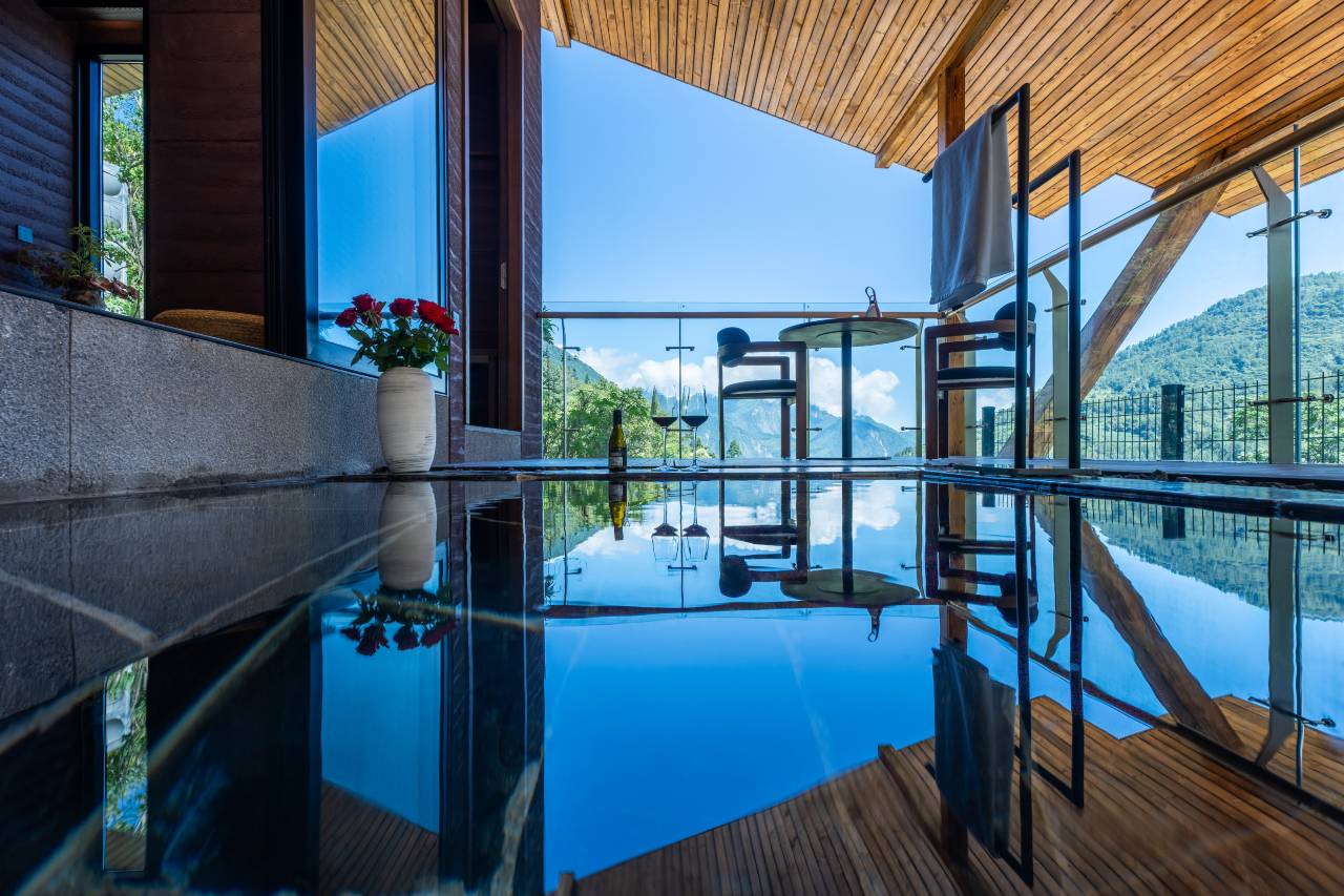 民宿位于四川省雅安市石棉县蟹螺乡江坝村4组,蟹螺堡子是尔苏藏族聚集地,省级非物质文化遗产保护单位。 喜雅勒取名源于尔苏语言中Yale,寓意美好的、美好事物。古树云山秘境、雾腾鸟语的避暑胜地,远离城市喧嚣,天然氧吧中适合放松和疗愈的野奢私汤云宿,定位高端民宿。喜雅勒民宿临近蟹螺堡子百年碉楼、祭祀广场,对现有4栋村集体传统建筑进行提升改造,保护利用和设计创意并举,利用原农村宅基地新建风貌匹配的多栋客房,筑造尔苏村落传统的石砌墙青瓦民居风格独栋建筑。客房均配有户外私汤泡池、观景露台等。服务内容包含餐饮、咖啡、酒吧等,并将充分利用餐厅、广场、公共空间,提供下午茶、私房菜及团建团餐服务,开展尔苏藏族文化传统的文化演艺、非遗传承、手工体验,以及应季农事种植采摘体验等。