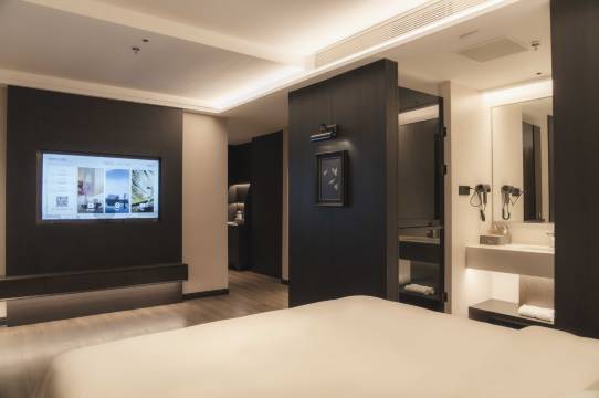 卫生满分:商务大床房打扫得一尘不染,床品柔软亲肤,卫生间干湿分离、无异味,备品齐全且质感好,细节超用心。