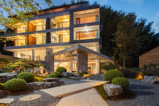 花筑奢·磐安岭云漫谷民宿,宛如一颗隐匿于山林之间的璀璨明珠,散发着迷人的魅力。 它静卧于青山绿水的怀抱之中,四周山林环绕,翠影摇曳,清新的空气沁人心脾,仿佛是大自然馈赠的一方净土。这里远离城市的喧嚣与纷扰,唯有静谧与安宁相伴。 民宿的公共区域堪称豪华与惬意的完美融合。泳池清澈见底,在阳光的映照下闪烁着迷人的光芒,让您尽情畅游其中,享受身心的放松。花园庭院繁花似锦,芬芳四溢,漫步其间,宛如置身于梦幻的仙境。池塘波光粼粼,鱼儿嬉戏,为这方天地增添了无限生机。家庭影院为您带来震撼的视听盛宴,让您在闲暇时光尽享欢乐。茶室里,茶香袅袅,品味的是岁月的静好。餐厅提供精致的美食,满足您的味蕾需求。会议厅设施完备,是商务交流的理想场所。酒窖珍藏着各类佳酿,等待您来品鉴。棋牌室则为您增添了休闲娱乐的选择。 每一间客房都精心布置,配备智能客控系统,让您尽享科技带来的便捷。浴缸舒适宜人,让您在疲惫时能尽情放松身心。观景阳台将山林美景尽收眼底,清晨,当阳光洒入房间,唤醒您美好的一天;夜晚,繁星点点伴您入眠。 周边景点更是锦上添花,大盘山雄伟壮观,云雾缭绕;杜鹃谷花开似锦,如诗如画;花溪景区溪流潺潺,美不胜收。 花筑奢·磐安岭云漫谷民宿,不仅仅是一个住宿的地方,更是一个让您与自然相拥,与美好相遇的心灵栖息地。在这里,您将体验到前所未有的宁静与奢华,感受到大自然与人文关怀的完美融合,留下一段难忘的美好回忆。