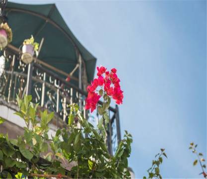 我们入住的客栈很美丽。在洒满阳光的走廊,撞见一墙热烈的花,时光都在这里慢下了脚步,只想静静感受这份温柔的美好