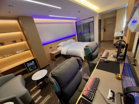 新开的电竞酒店没得说!电脑配置超高 运行流畅,打游戏一点都不卡,各种热门游戏都有预装。床品舒适,卫生状况良好。酒店位置不错,周边吃饭购物都方便。而且服务人员态度超好,有问题能迅速解决。在这里玩得尽兴,住得舒服,强烈推荐给电竞爱好者!