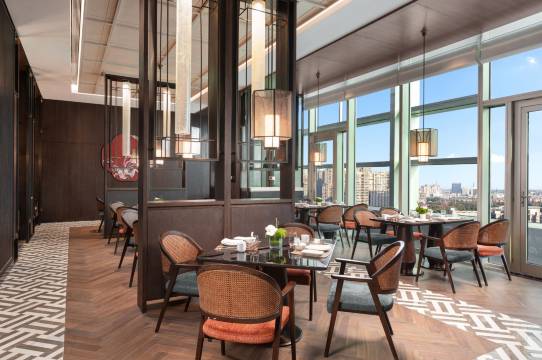 浙江省海宁市,坐落于风景如画的钱塘江北岸,因“钱江潮”而闻名,以“华彩皮都”而著称,“潮”亦为风骨,使深厚的文化底蕴和创新的时尚活力在此汇聚奔涌。海宁华邑酒店坐拥繁华的海宁中国皮革城商圈,紧邻海宁市政府。前往金庸旧居、徐志摩故居、南关厢历史文化街区、钱塘江观潮点等人文、旅游景点非常便利。酒店秉承中华美学生活化的理念,以月洞门为主元素,巧妙融入浪潮的涌动,千年皮影戏的神秘光影及硖石灯彩的绚丽光彩,让空间充满古典韵味与现代气息。精心打造的现代中式风格的客房及套房、荟萃中西美馔和本地风味的各色餐厅及品茗雅境、健身休闲中心,以及逾2,550平方米的室内灵动会议及宴会空间,皆可满足您住享与领略海宁“潮文化”新体验。