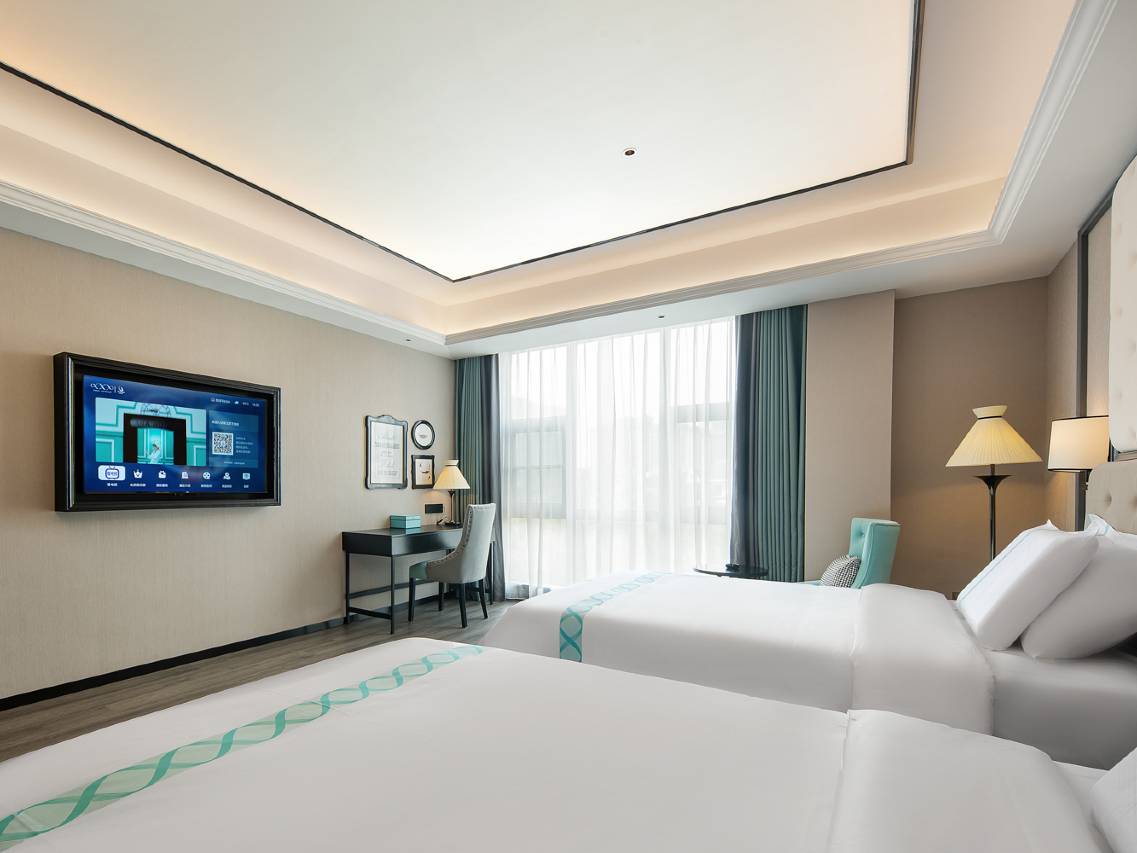 房间很干净。升级的高级大床房,补了差价。前台服务态度很好,一层楼只有八个大床房,且不在隔壁,朋友出游的时候要注意。有小朋友喜欢的送餐机器人。五一出行价格合理,早餐挺不错,蛋糕类的多一些会更好。