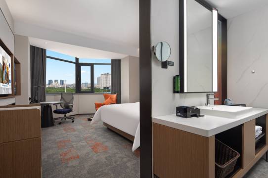 前台服务好,必须给这家酒店点个大大的赞!服务周到,Doris小姐姐很贴心,酒店还给免费升级了房型。位置绝佳!离万绿园世纪公园步行只要十几分钟,周边吃饭购物都很方便。酒店大堂装修很有格调,房间内的设施也很新,房间风景也很好,床垫软硬适中,卫生细节处理得很好,干湿分离的卫生间深得我心,隔音效果也非常好。性价比超高,强烈推荐给来这边玩的朋友们!