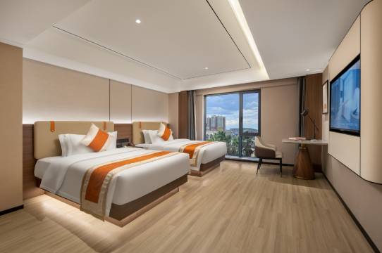 和朋友一起来入住的,走进大厅环境挺好的,前台小姑娘热情甜美的帮我办理了入住,一百多的房间还含早餐,早餐很好吃,尤其是阿姨煮的隆回粉,这性价比挺高的,再说房间卫生干净整洁,而且还有智能小度挺适合我们这这懒人的 ,也有地下停车场,下次还来住。