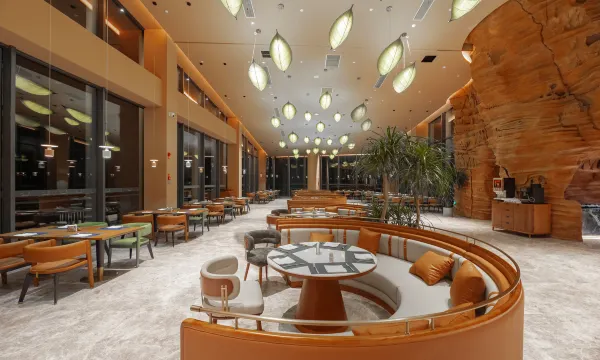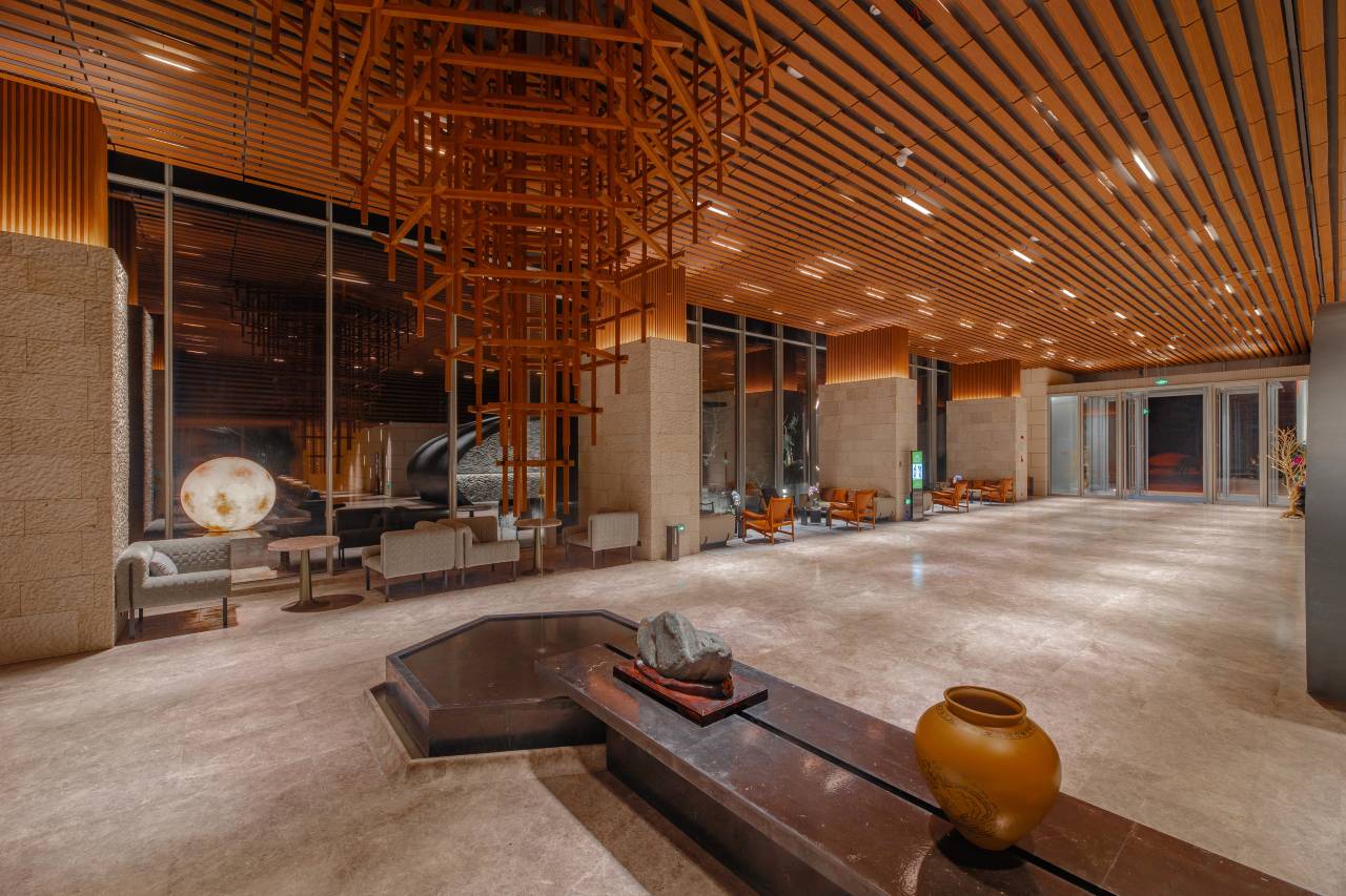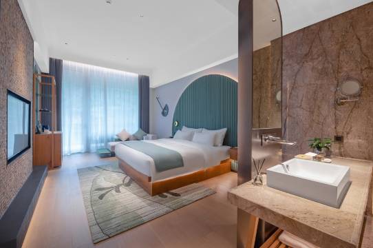 酒店地处文成县西坑镇梧溪村,紧靠龙麒源景区 ,装修时尚高雅,设施齐全,环境舒适。场地沿着水岸从平地向山坡自下而上,落差达30米,被两条溪流环抱,四周都是起伏的山脉,所在的区域具有浓厚的畲族文化,自然条件独特,地域文化浓厚。拥有各式风格迥异的主题客房,每一间置身于山水之间,由于整个酒店在龙麒源景区脚下,所以全店被园林景观环绕,沉浸式感受森林氧吧的气息。推开窗便能看到园林景观,关上门就能享受属于自己的安静世界,出门走几步路,则又能邂逅游客,走进人间烟火之中,感受大自然的新鲜空气,感受不一样到森林氧吧。