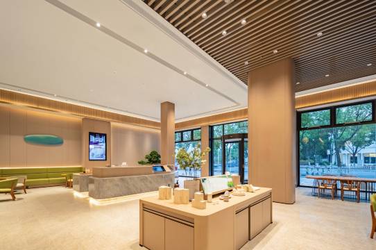 房间设计延续了全季一贯的简约美学,原木色调搭配落地窗,让江景成为最自然的装饰。床品舒适,隔音优秀,夜晚只听得见隐约的水声,伴人入眠。浴室干湿分离,备品清香,细节处尽显品质。