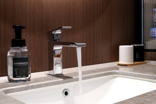 房间设施:房间空间合理,不拥挤,还有小度智能管家。床头有插座,很方便。浴室干湿分离,智能马桶,花洒水很冲,这点非常棒!