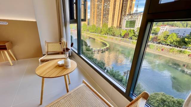房间干净整洁,落地窗外面就是河,物超所值!